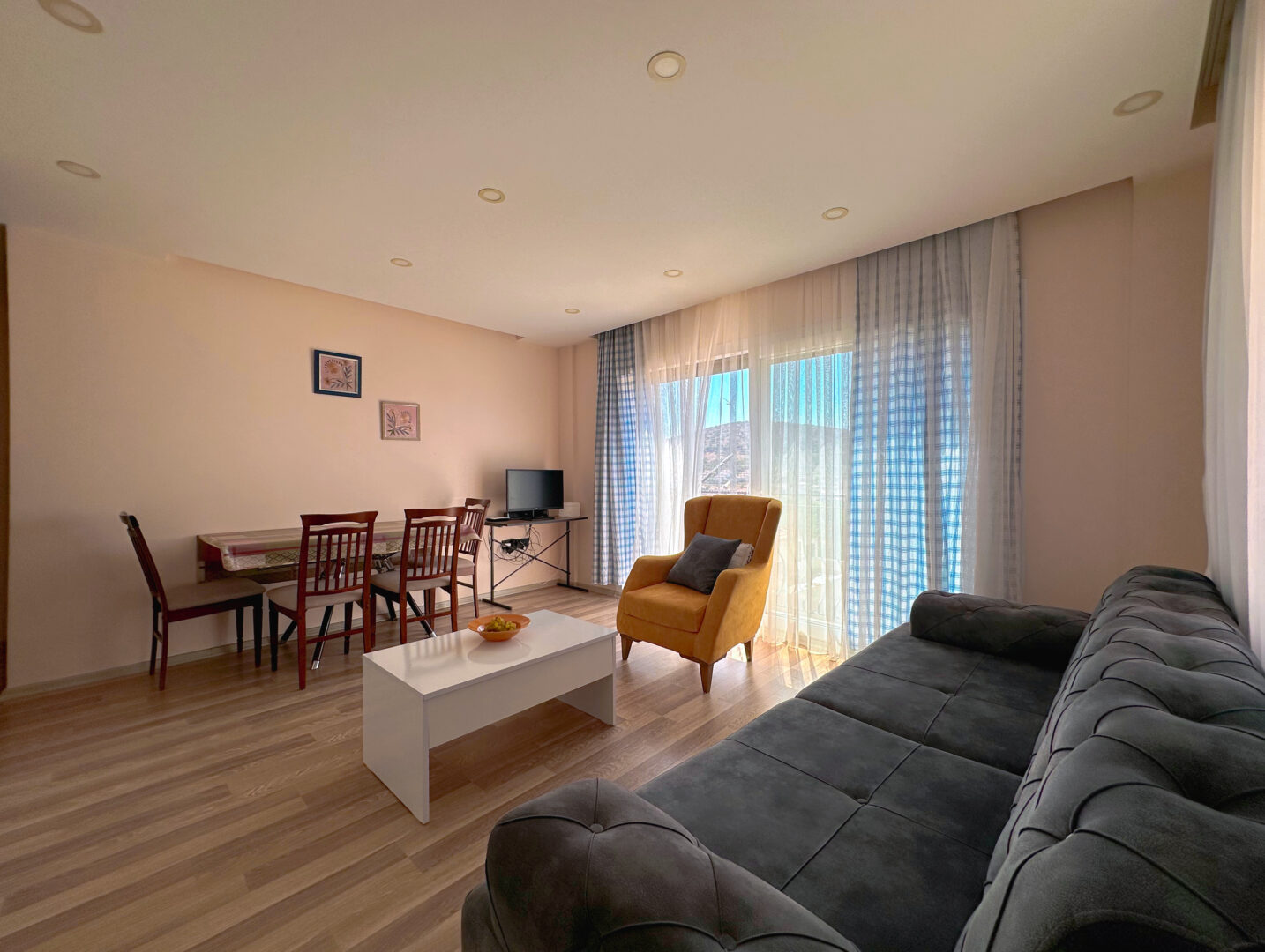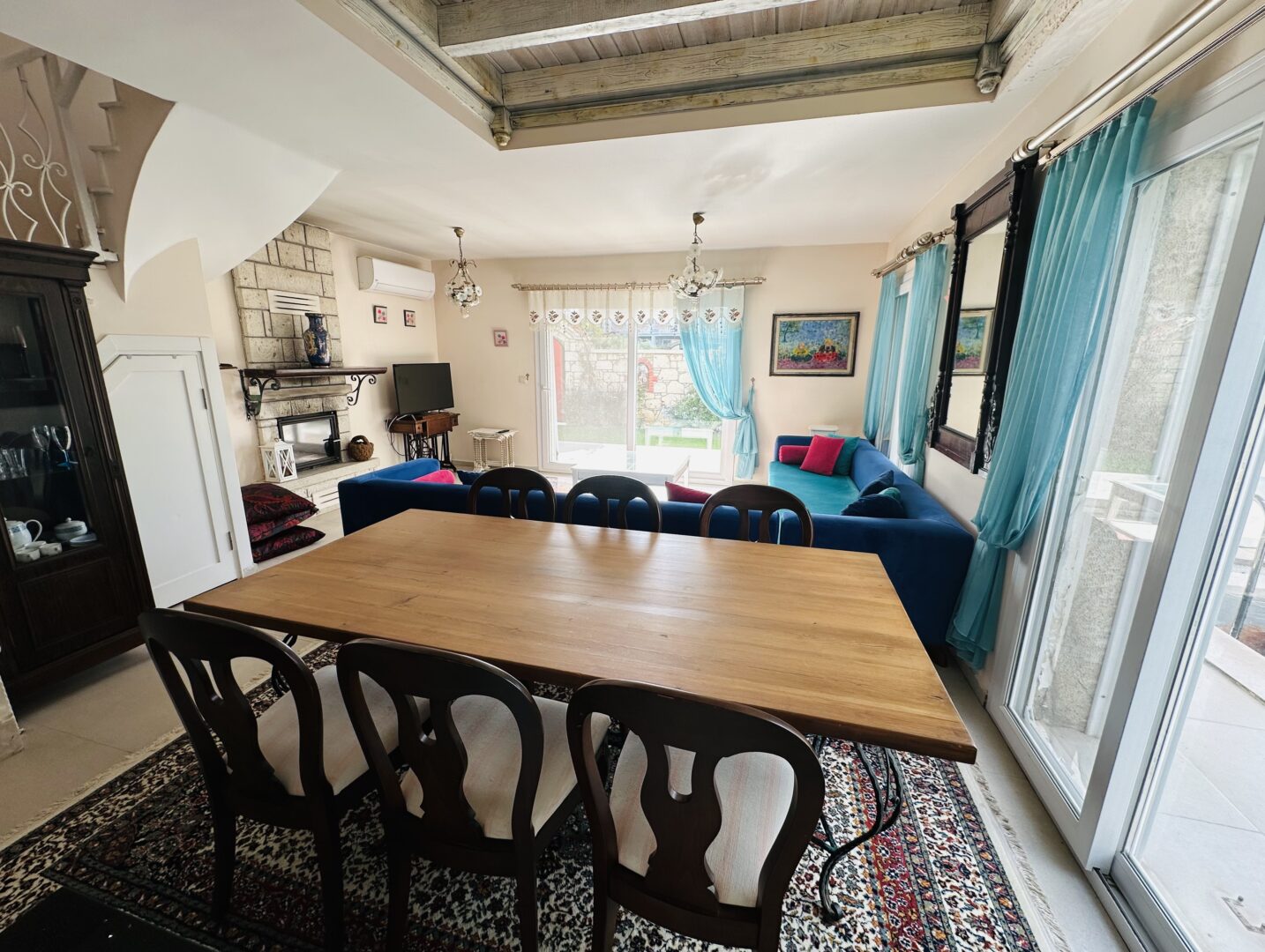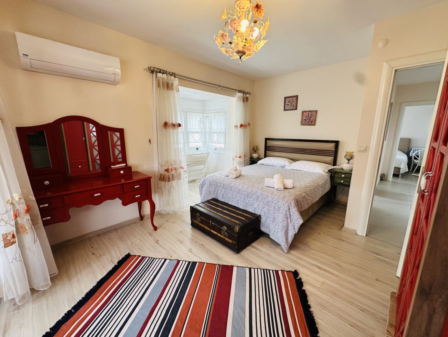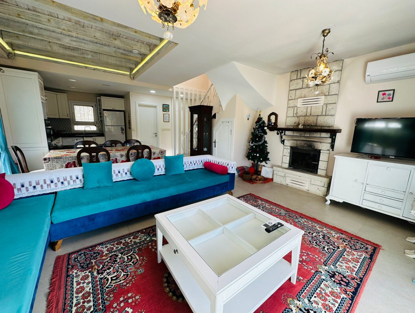 Sakinliğin ve huzurun buluştuğu, özenle dizayn edilmiş evimiz size eşsiz bir tatil deneyimi sunuyor. Evin içine girdiğinizde, sizi sıcacık bir ambiyans karşılayacak ve kendinizi evinizde gibi hissedeceksiniz. Mutfak bölümü, modern tasarımı ve tüm gerekli donanımlarıyla sizler için hazır. Yatak odaları, dinlendirici renklere sahip ve zarif mobilyalarla donatılmıştır. Evimiz yenidir ve henüz hiç kullanılmamıştır.