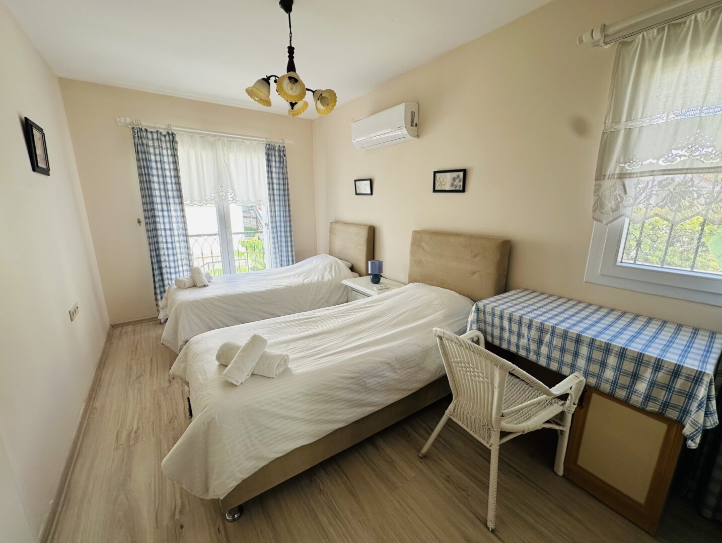 - Yatak Tipi: 1 Kraliçe Yatak, 2 Tek Kişilik Yatak,
