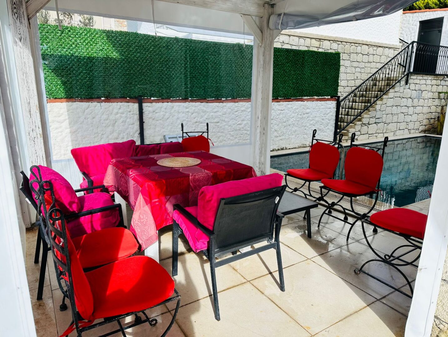 - Kolaylıklar: Ayrı Giriş, Balkon, Beşik, Buz Dolabı, Çamaşır Makinesi, Fireplace, Havalandırma, Mutfak, Park Yeri, Sıcak Su, Televizyon, Temel İhtiyaç Malzemeleri, Teras, Ücretsiz WiFi, Yemek Alanı, Yüzme Havuzu